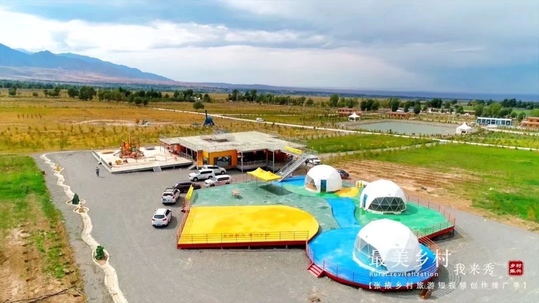 羊蹄沟度假村 位于新坝镇西大村,主要有乡村特色主题民宿22栋,每栋主体2层,建筑面积80㎡,可供游客住宿、餐饮、娱乐等。民宿周边建有餐饮、游乐、观景台等设施。民宿外观样式以乡村气息的农家楼院为主,以祁连雪山为背景进行合理布局和色彩搭配,内部装修设多个主题样式,可满足不同消费人群需求。