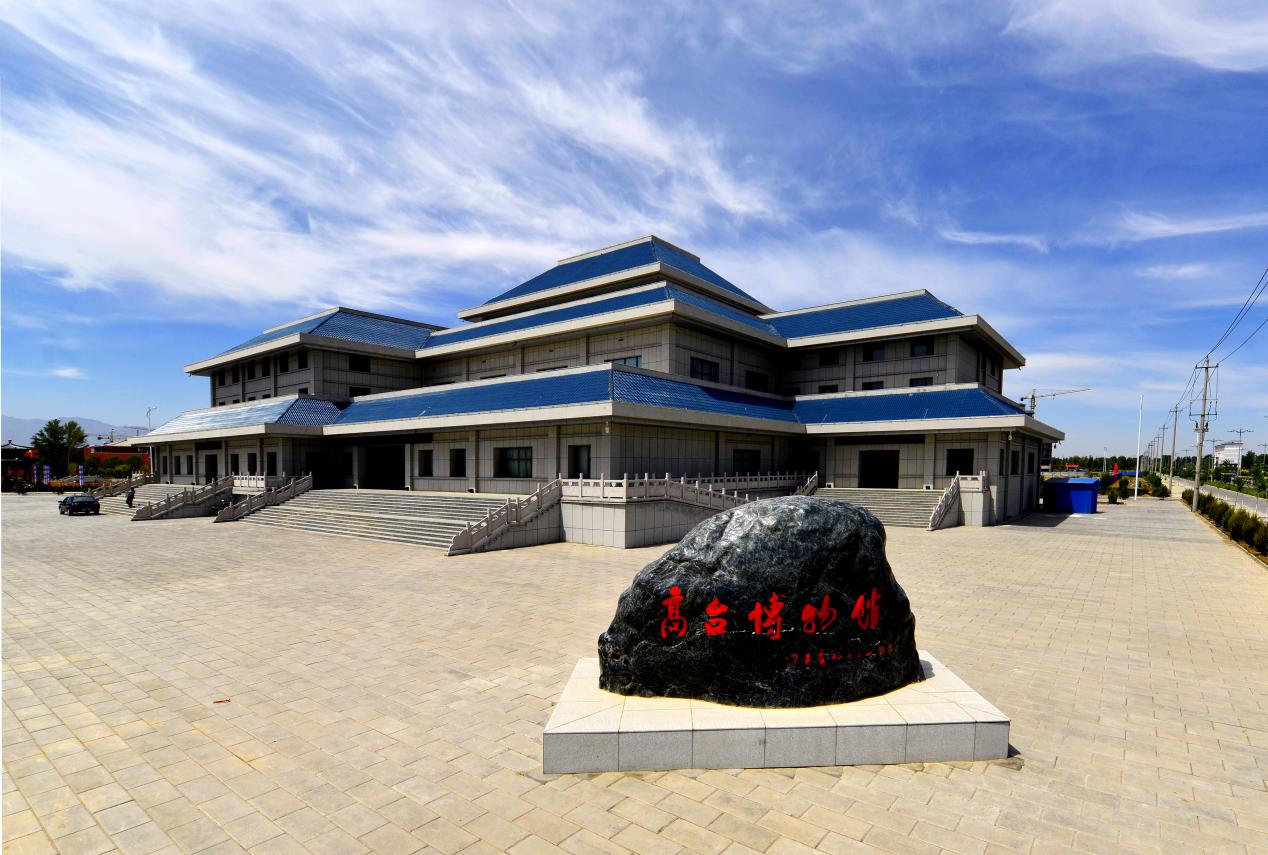 高台县博物馆位于黑河湿地新区,是甘肃省内首批免费开放的博物馆之一。建筑面积达5565平方米,展厅面积2723平方米,其中展厅分为两个展区,第一展区为《西塞遗珍—高台文物精品展》,第二展区为《古冢丹青—高台魏晋壁画砖陈列》,形象地再现了古代高台人民在农业开发、民族融合、丝绸之路畅通的历史画面。馆内现有藏品5000余件,其中三级以上珍贵文物575件。时代大多界定为汉、魏、晋时期,是省内县级馆中一级文物最多的博物馆之一。其中,魏晋壁画砖、彩绘木器、木版画、十六国时期的纪年简牍和汉晋丝绸,构成了我县博物馆的馆藏特色。