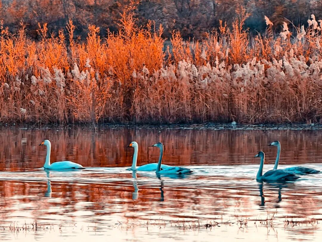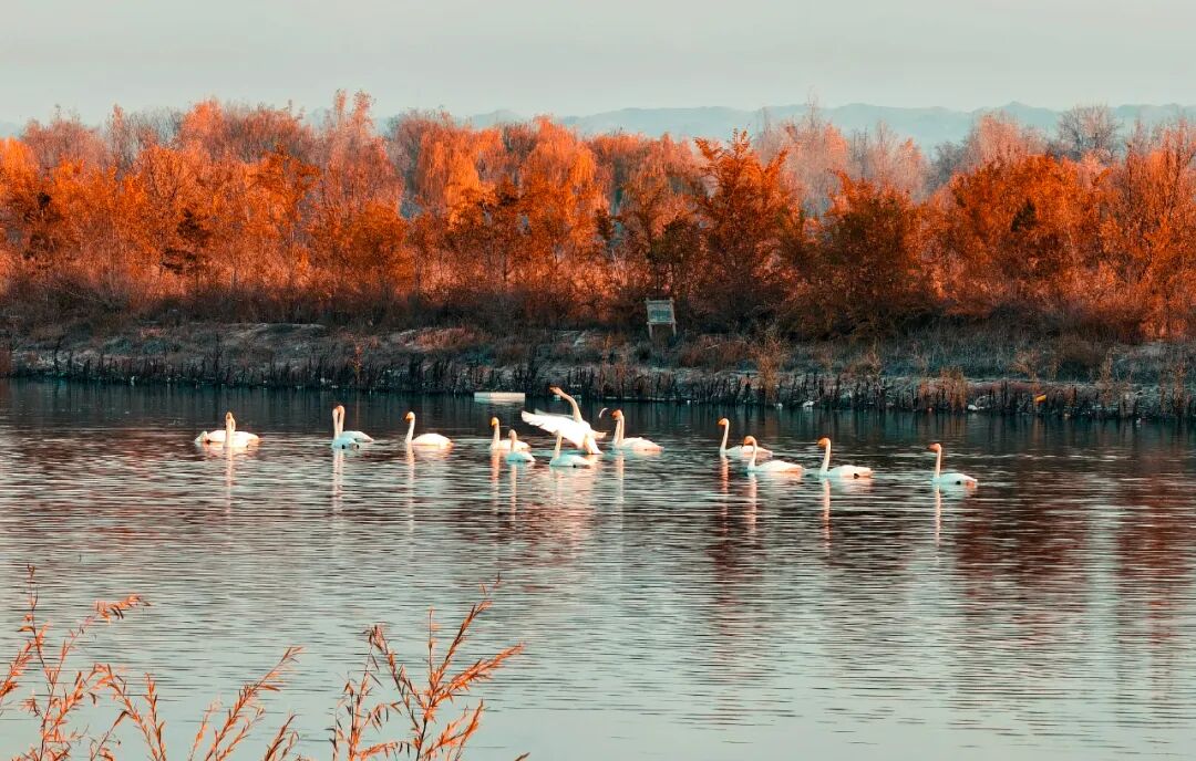 黑河湿地天鹅飞