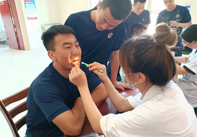 活动现场,医院组织急诊科、超声科、眼科、口腔科等医技科室的临床医生,认真、负责、详细询问消防救援人员身体状况及训练情况,热情为他们进行口腔检查、眼底检测、腹部彩超检查及血压、血糖测量等体检服务。诊疗过程中,专家们充分发挥医疗专业优势,认真评估消防救援人员的身体状况,解答健康咨询,提出个性化健康建议,并对一些日常训练容易出现的跌打扭伤等问题,进行耐心细致地讲解,传授简单有效的日常预防方法和治疗措施,增强自我保健意识,了解自身健康状况。