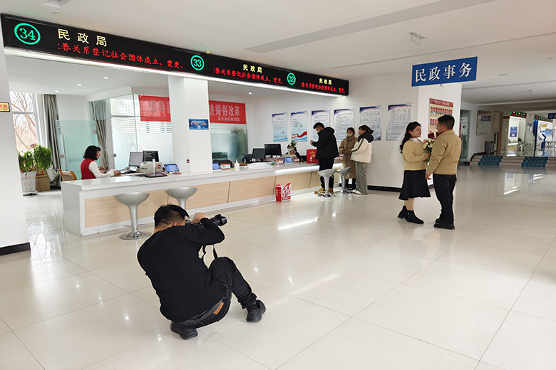 面对陆续进来的办事群众,咨询引导人员发出一声声“新年好”的问候,指引群众到相关窗口有序办事,窗口工作人员热情耐心地接待每一位前来咨询或办事的群众,政务大厅内一派井然有序、温馨服务的工作景象,受到办事群众的交口称赞。其中户籍办理、营业执照办理、婚姻登记等服务窗口成为“热门”。