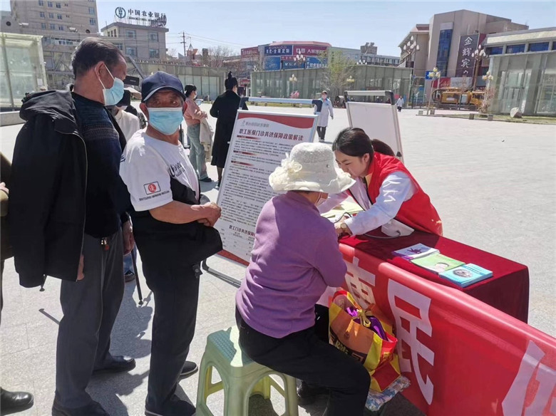 活动现场,通过悬挂宣传条幅、政策展板、发放宣传手册、义诊等形式,深入宣讲医保政策,医保工作人员现场解答群众咨询的问题,医护人员为过往群众提供免费测量血压义诊活动,并对合理用药、日常保健等进行健康指导,共发放宣传折页100余份,免费测量血压60余人。