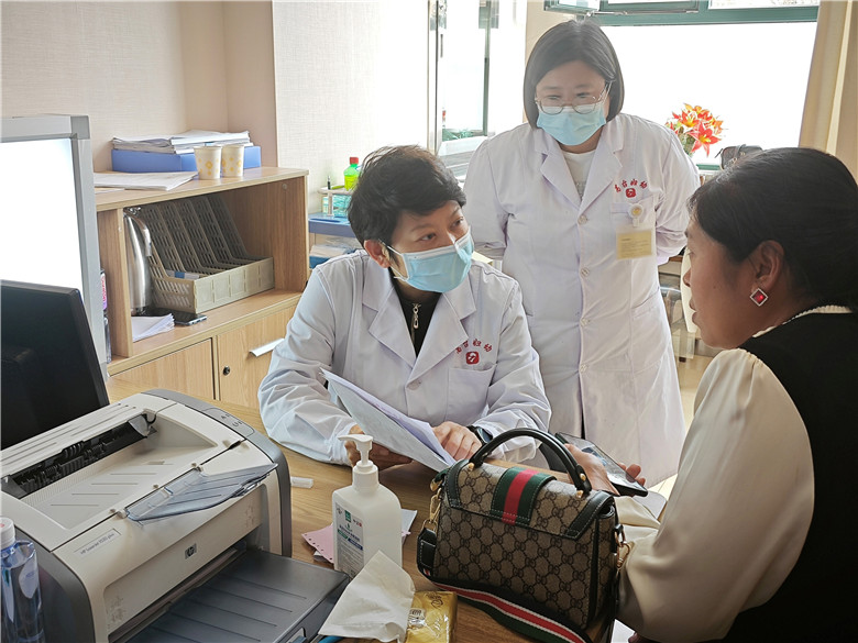 义诊现场,慕名而来的群众在医务人员安排下井然有序地排起了长队。隆主任热情地接待每一位患者,认真询问病史,详细查看病历和检查资料,结合患者“两癌”检查结果进行细致地诊断,医院乳腺科医务人员现场学习。她运用娴熟的医疗技术和通俗易懂的语言为群众答疑解惑、排忧解难,同时给医院乳腺科人员认真讲解,既能让群众就近享受到省级专家的优质诊疗服务,也给医院医务人员手把手教会了知识。