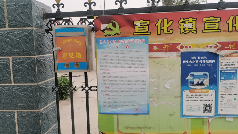 重拳出击“打违法”。制定印发《高台县涉水违法违规问题排查整治专项行动工作方案》,重点对未经许可擅自打井、超许可取水、超用途配水,无证取水、无计量取水、拖欠水资源费和破坏水工程等各类涉水违法犯罪行为进行排查清理整治。同时,制定《高台县水事违法行为有偿举报奖励实施细则(试行)》,明确水事违法行为举报奖励事项、奖励条件、奖励标准、奖励途径等事宜,并在全县镇村及基层水管单位醒目位置进行了公告,鼓励社会公共积极参与涉水行为监督。至目前,追缴水资源费41.11万元,立案查处超许可取水等违法案件共13起,处罚金24.94万元,张贴公告180余份。