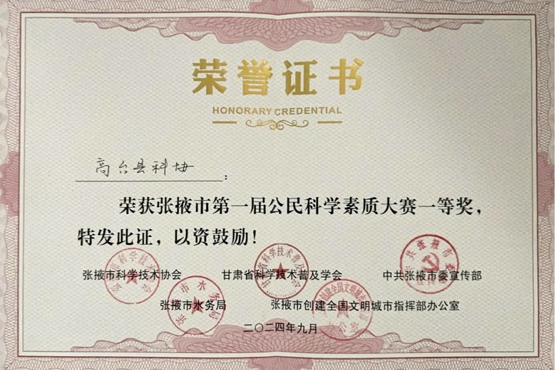 9月5日,由市科协、省科学技术普及学会、市委宣传部、市创建全国文明城市指挥部办公室、市水务局五部门联合主办的“张掖市第一届公民科学素质大赛”在甘肃省张掖中学举行。大赛内容涵盖《中华人民共和国科学技术普及法》《全民科学素质行动规划纲要(2021—2035年)》《甘肃省全民科学素质行动规划纲要实施方案(2022—2035年)》,以及科学家精神、重大科技成果、新兴科技、生态环保、防灾避险、卫生健康、食品安全、张掖市创建全国文明城市、新时代全国节水型社会新标杆等相关知识,旨在推动全市共建共享共用科普资源,促进公民科学素质持续提升。
