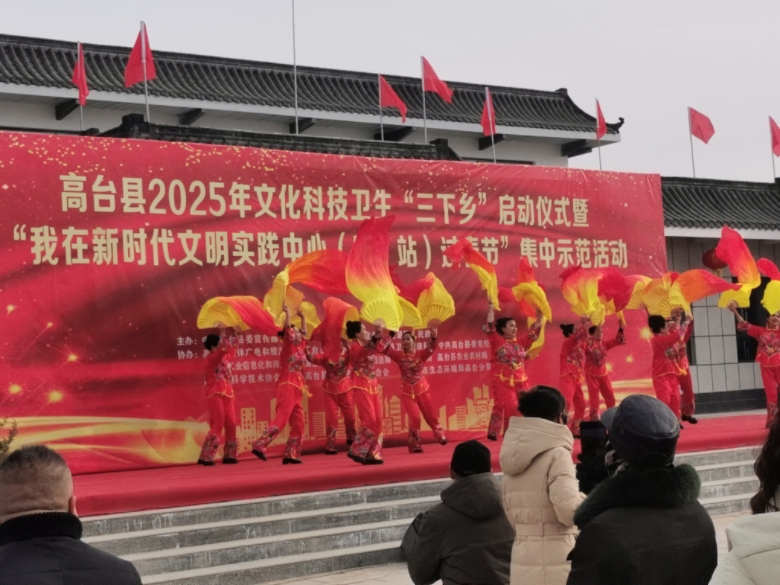 为进一步丰富群众精神文化生活,弘扬中华传统节日文化,营造安定、和谐、欢乐、祥和的新年气氛。1月17日上午,县农业农村局组织人员积极参加在巷道镇东联村新时代文明实践广场举行的“高台县2025年文化科技卫“三下乡”启动仪式暨我在新时代文明实践中心(所、站)过春节”集中示范活动,为群众送上了集文化、科技、卫生为一体的精神文化大餐。