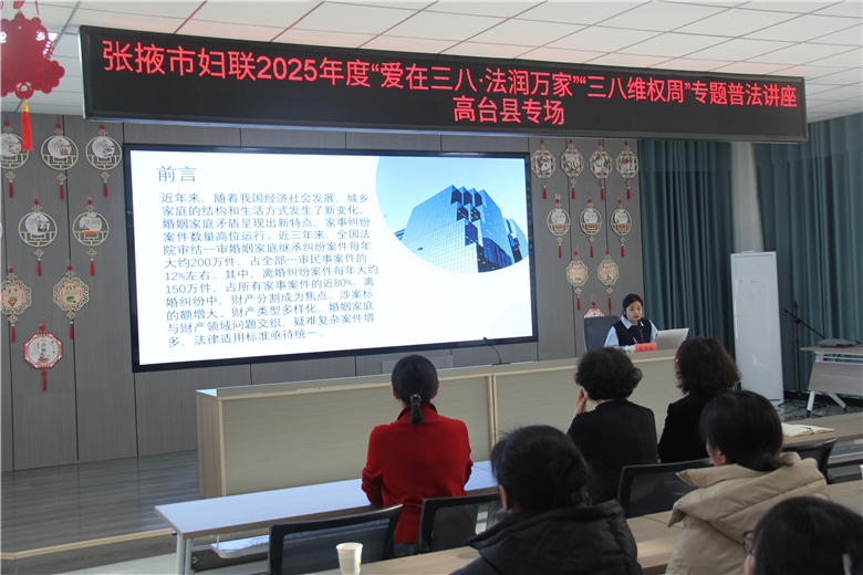 为深入学习贯彻党的二十大精神和习近平法治思想,弘扬社会主义法治精神,增强妇女法律意识,在2025年“三八”国际妇女节来临之际,市县妇联在新建东社区举办“爱在三八·法润万家”专题普法讲座,城关镇、巷道镇妇女干部、村(社区)妇联主席、执委代表参加了讲座。