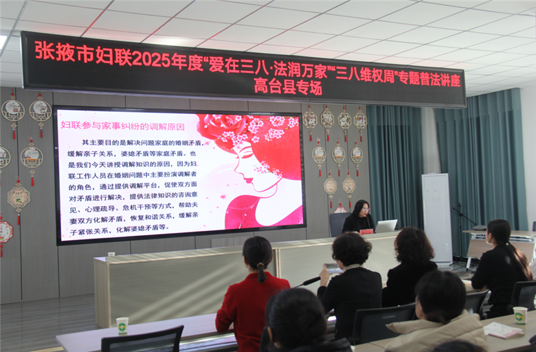 甘肃民申律师事务所魏烈霞律师从妇联参与家事纠纷调解的原因、纠纷调解的原则、情绪疏导的方法、婆媳矛盾和夫妻矛盾调解策略等方面进行了讲解,让大家掌握了“一听、二问、三查、四促、五定”的调解方法和技巧,帮助基层妇联干部对妇联组织如何参与基层社会治理,有效化解婚姻矛盾纠纷有了直观的认识和提升。