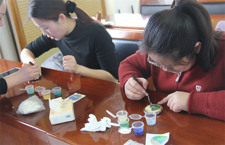 在扭扭花制作环节,彩色扭扭棒在大家手中跳跃、旋转,不一会儿,一朵朵精致的扭扭花便绽放在她们的手中。有的花朵花瓣层叠,宛如盛开的牡丹;有的花朵小巧玲珑,如同初绽的桃花,每一朵花都凝聚着大家的巧思与匠心。大家互相欣赏着彼此的作品,脸上露出了满意的笑容,许多人还开心地拿起手机,与自己的作品合影留念,记录下这美好的瞬间。在浓厚的节日氛围烘托下,大家不仅放松了心情,还陶冶了情操,彼此之间的友谊也得到了加深。