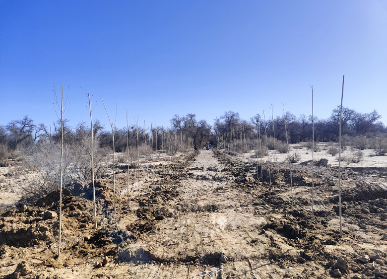 补植工作秉持 “适地适树、生态优先”的原则,选用本地培育的红柳、沙枣、樟子松等树种,这些树种对本地环境适应性强,防护效能明显,能有效提升森林的生物多样性与稳定性,增强森林抵御病虫害和自然灾害的能力。截至目前,已累计完成补植补造340余亩,种植各类苗木6000余株。