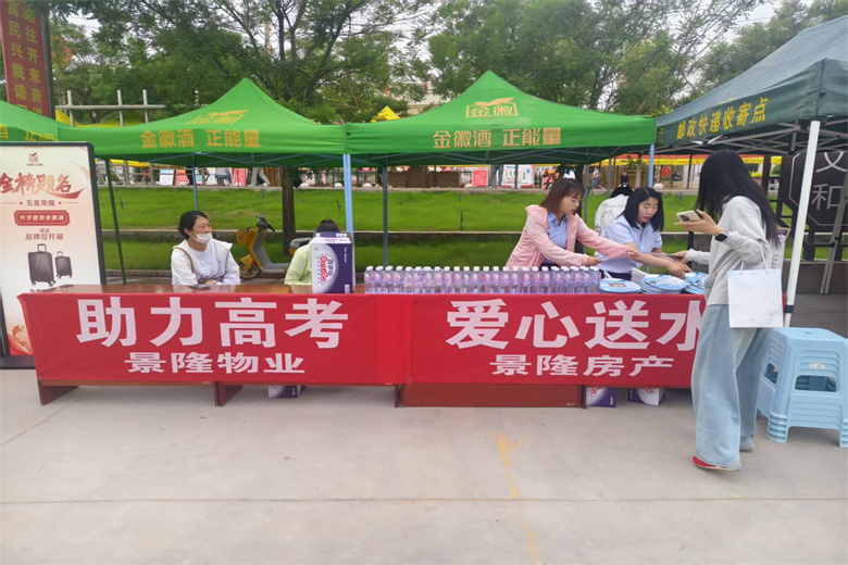 三是群策群力,加油助威。物业企业自发制作横幅,为考生们加油鼓劲,高考当天,“红色物业管家”们在各小区、考点附近醒目位置设立高考爱心服务点,免费为考生及家长提供矿泉水、葡萄糖补水液,送去夏日清凉与安心。