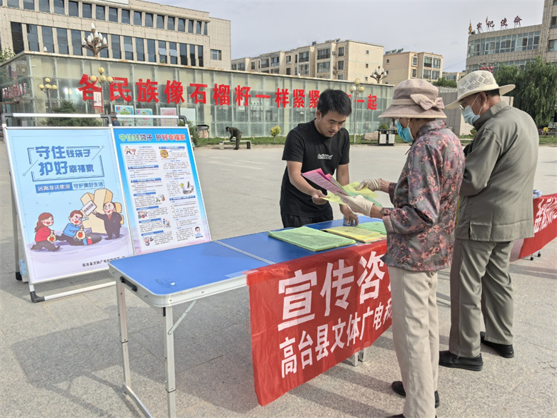 为了提高社会公众对非法集资危害的认识,增强自我防范意识,做到准确识别、自觉远离、自觉抵制非法集资,6月13日,高台县文体广电和旅游局在县中心广场开展“守住钱袋子·护好幸福家”防范非法集资普法宣传活动。