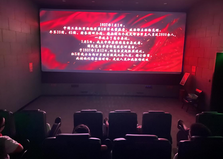 为深化“小小讲解员”的历史感知,培训特别安排了沉浸式环节——观看《血战高台》5D电影。逼真的视听效果瞬间将孩子们带回烽火连天的战场,英雄们浴血奋战的壮烈史诗化作眼前鲜活的历史画面,在幼小的心灵中激荡起对革命先辈最深的敬意。