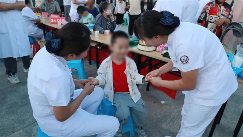 活动还专门设置了儿童健康服务点,为适龄儿童提供免费儿童专用药贴服务,同时开展小儿推拿。这些药贴依据儿童生理特点配制,针对常见的呼吸系统、消化系统等问题有良好的调理作用;小儿推拿则通过专业手法刺激穴位,帮助改善儿童脾胃功能、增强免疫力。医务人员根据儿童体质特点,精准选穴、规范操作,不少家长带着孩子前来体验。