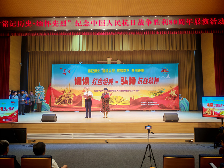 为纪念中国人民抗日战争暨世界反法西斯战争胜利80周年,传承红色基因,弘扬伟大抗战精神,9月2日下午,由高台县图书馆主办、城关镇新建东村社区协办的“铭记历史·缅怀先烈”主题展演活动在县图书馆隆重举行。文旅系统及新建东村社区的党员干部齐聚一堂,共同纪念中国人民抗日战争胜利80周年,他们怀着崇敬与追思之情,重温那段烽火岁月,汲取伟大抗战精神的力量。