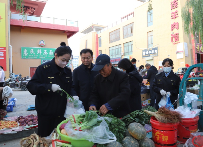 10月11日上午,高台县市场监管局在汉唐早市设立宣传点、快检台,开展“我为群众办实事‘你点我检’安民心”活动。