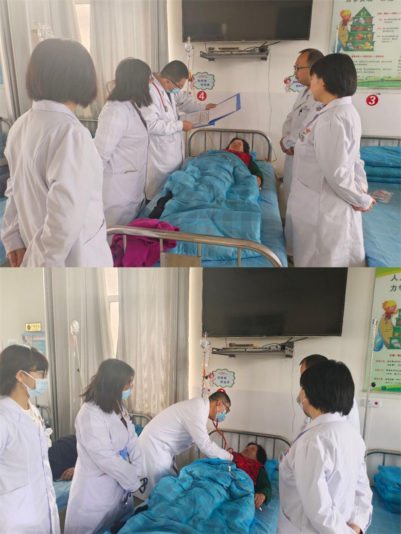 活动中,医共体专家深入病房,与卫生院医师共同开展三级医师查房。在一位慢性疾病患者床旁,专家们详细询问患者病史、症状变化及治疗进展,仔细查看体征,结合住院病历对诊断依据、治疗方案进行梳理完善。