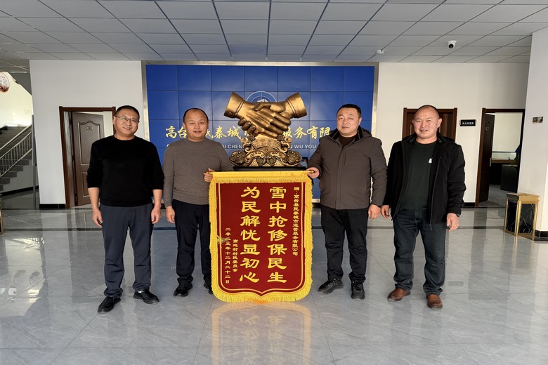 近日,高台县高地佳苑小区供水主管因老化爆管,致全小区停水。县民泰公司供水抢修队顶风冒雪,经4个多小时奋战,凌晨5点成功修复并恢复供水。近期,小区居民代表送来锦旗,上书“雪中抢修保民生,为民解忧显初心”,这是对抢修行动及公司提升服务能力的认可。