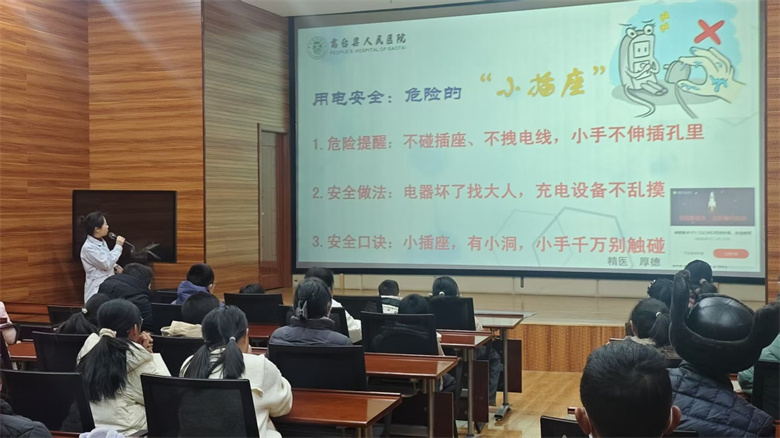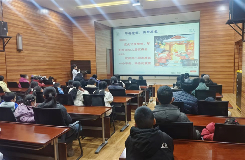 讲座现场,王蕾结合寒假及春节期间的安全特点,聚焦孩子们容易遇到的意外伤害风险,把安全知识融入一个个生动场景。她用卡通图片展示烟花爆竹、热水壶、坚果等常见“安全陷阱”,通过“安全小剧场”模拟异物卡喉、烫伤等突发情况,再用通俗易懂的语言拆解预防要点和急救方法。