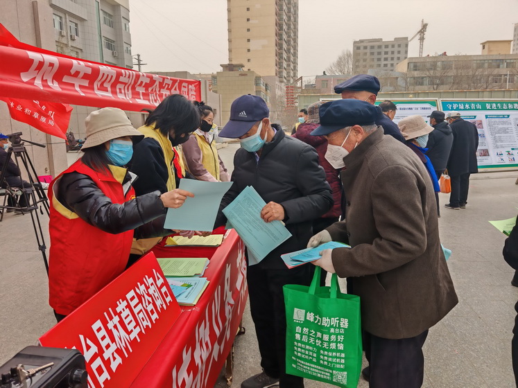 活动现场,志愿者通过设立集中宣传咨询点、悬挂横幅、摆放宣传展板、播放音频、发放宣传资料、提供咨询服务等形式,向广大群众宣传义务植树、防沙治沙、林草资源管护、野生动植物保护、特色林果产业、三北”工程建设及林草法律法规等内容。倡导广大干部群众主动做生态文明理念的传播者,积极弘扬植绿、护绿、爱绿、兴绿文明新风尚;主动做绿色生态家园的建设者,通过造林绿化、抚育管护、认种认养、捐资捐物、志愿服务等多种形式履行植树义务,以实际行动绘就绿色生态家园美丽画卷;主动做生态环境的守护者,坚决抵制损毁林木、侵占绿地、攀枝折花、践踏草地、乱砍滥伐等破坏绿化的行为,积极参与绿化管护志愿服务,共同守护好家门口的每一片林、每一寸绿。