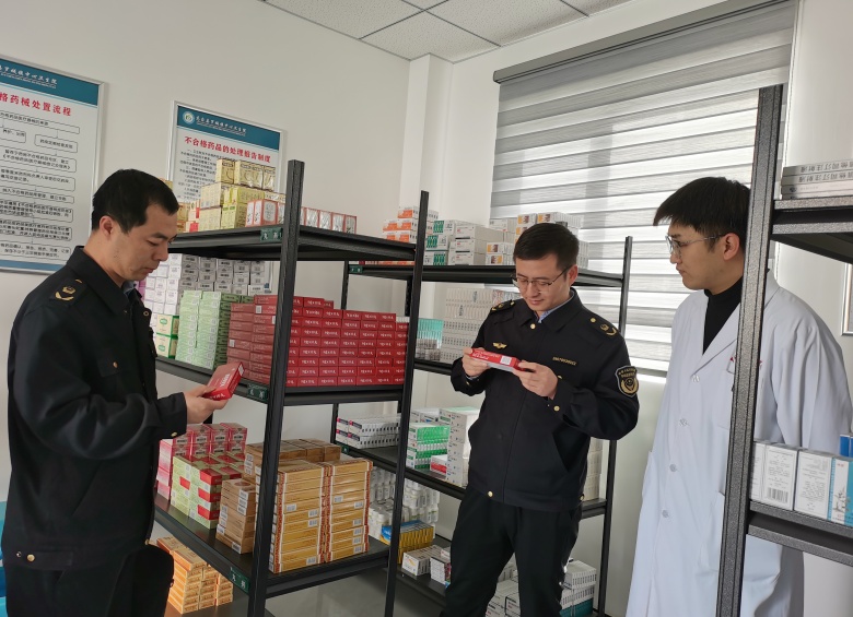 此次专项检查立足5家新建镇卫生院药房药库,坚持“从零起步、规范先行”,紧盯药械购进、储存、养护、使用、管理全链条,实现药械监管与机构建设同步推进。执法人员通过现场核查、台账查阅、实地查验等方式,对硬件设施、制度建设、人员管理、质量管控等进行全方位检查,重点核实药房药库布局、分类储存、温湿度调控设备及冷链管理是否符合规范,供货方资质、购进票据、验收记录、购销台账等资料是否齐全,确保监管要求落地见效、安全隐患及时清零。针对检查中发现的台账记录不规范、分区标识不清晰等问题,现场下达整改意见,按照“两册两簿两书三台账”模式实行清单化闭环管理,由属地市场监管所跟踪督办。同时,现场开展普法宣传和业务指导,讲解药械储存养护、台账管理、风险排查等实操技巧,帮助新建机构快速建立规范化管理体系,提升自主管理能力。