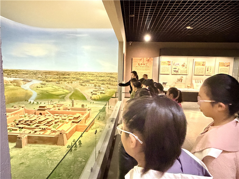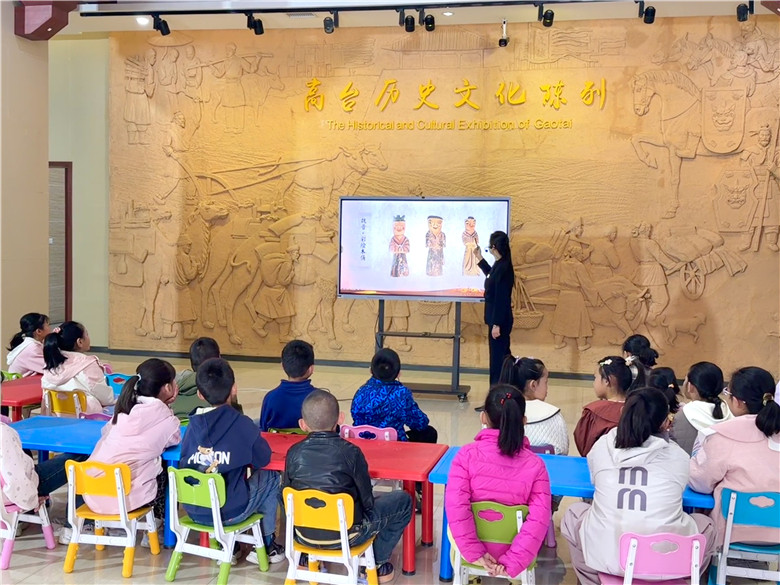 社教老师围绕丝绸之路与丝绸展开介绍,为学生们梳理了丝绸之路的历史背景与重要意义。结合高台县博物馆馆藏文物,让学生更直观地了解丝路沿线的贸易与文化交流,并从服饰形制到礼仪内涵介绍汉服的相关知识,帮助学生建立起对汉代服饰的基本认识。随后,社教老师从历史沿革、建筑布局及其在丝绸之路上的重要地位对骆驼城古遗址进行了详细的讲解,让学生对汉代边郡古城有了更清晰的了解,从宏观上建立起对丝路实物的认知,不仅拓宽了其知识视野,也为后续的手工体验奠定了文化基础。