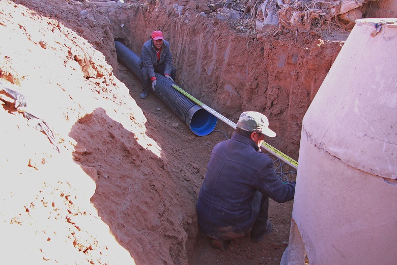 走进黑泉镇定安村污水管网建设项目施工现场,耳边传来阵阵机器轰鸣声,挖掘机正在有条不紊进行排污管道沟槽开挖作业,工人们紧随其后,在开挖好的沟槽埋设管道,整个过程配合默契、衔接紧密。