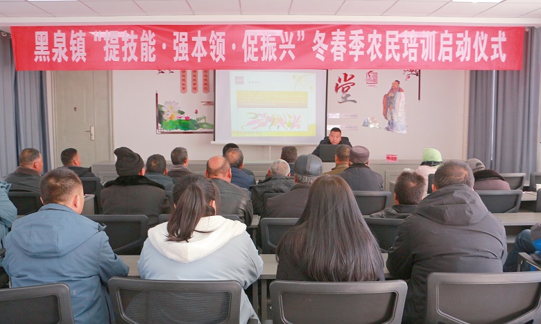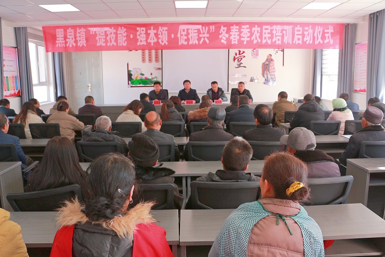 为全面贯彻党的二十大精神,深入贯彻落实党中央关于全面推进乡村振兴的战略部署,加快培养造就高素质农民队伍,黑泉镇于1月8日举行“提技能·强本领·促振兴”冬春季农民培训启动仪式,镇机关领导、各村党支部书记、村委会主任,包村干部和各村首期参训的农户,共计60余人参加启动仪式。