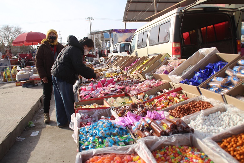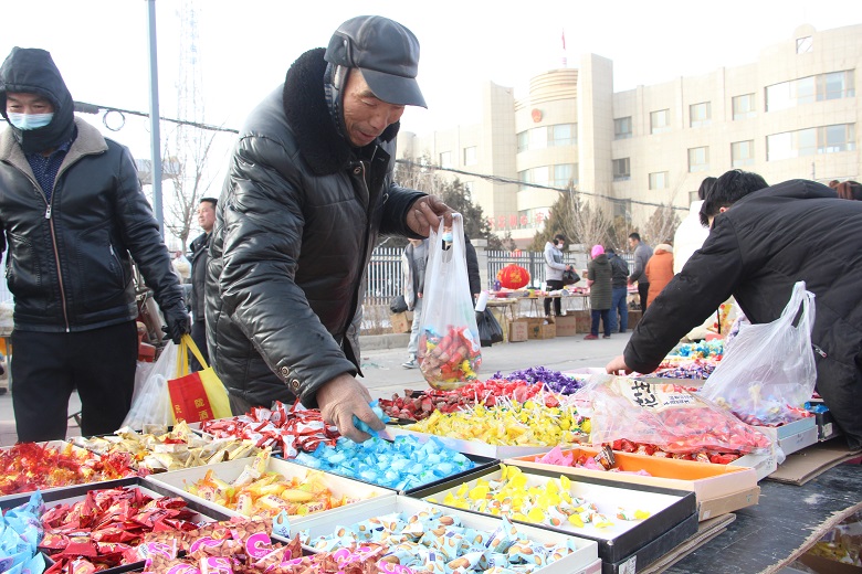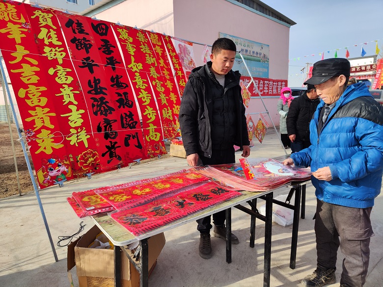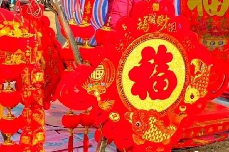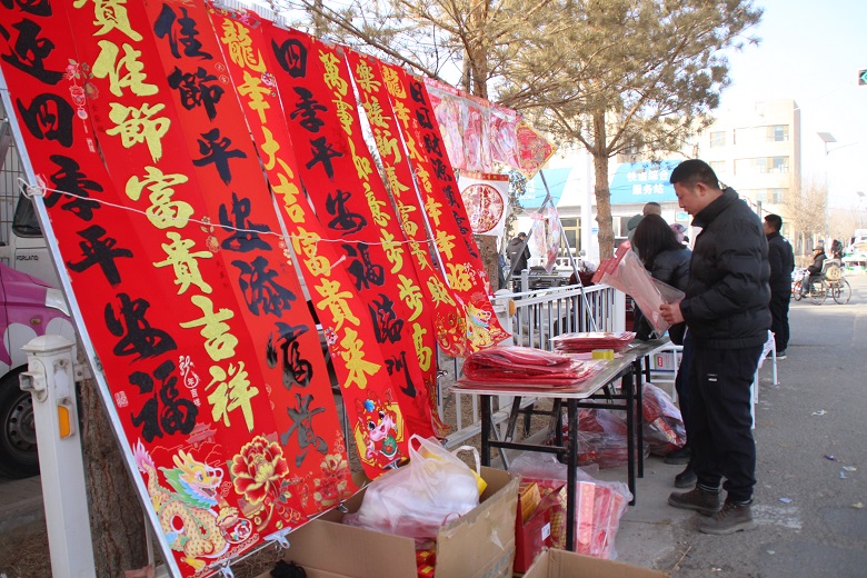 贴春联、挂福字是过年的传统习俗。集市上,一副副春联铺满地面,龙年主题的年画、窗花种类繁多。“快过年了,趁着今天赶集,正好买点春联、灯笼把家里布置一下,好好营造一下过年的氛围。”正在挑选春联的群众说道。
