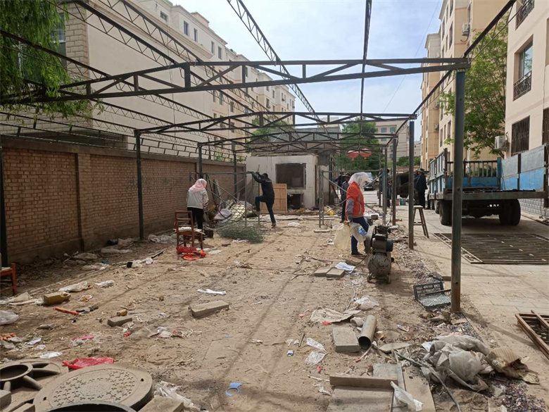 结合老旧小区改造项目,协调物业公司拆除东苑A区废旧车棚,重新划分停车位。