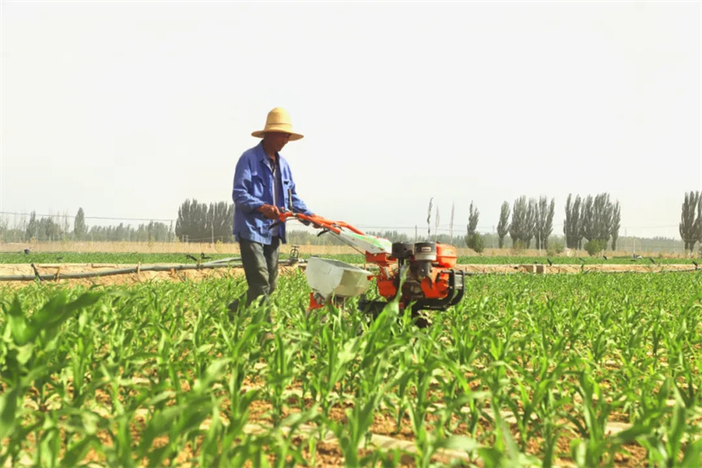 在永胜村,农机驾驶员们正在驾驶着中耕机、打药机在制种玉米田里来回穿梭,田间地头呈现出一派繁忙景象。正在给制种玉米施肥的永胜村村民周国元说道:“今年的玉米出苗还不错,目前正是玉米拔节期,后面重点是做好除草松土、施肥、病虫害防治,保证今年秋天有个好收成。”