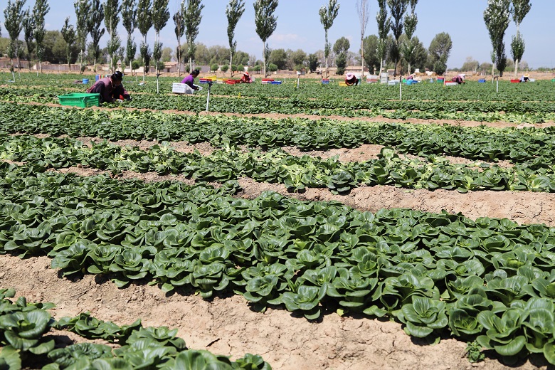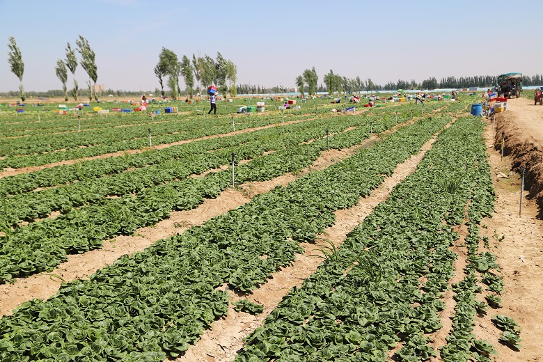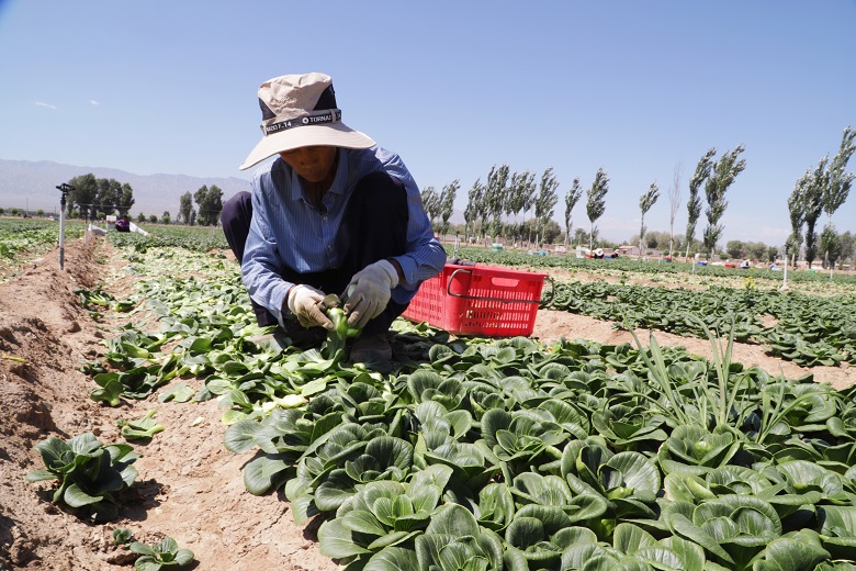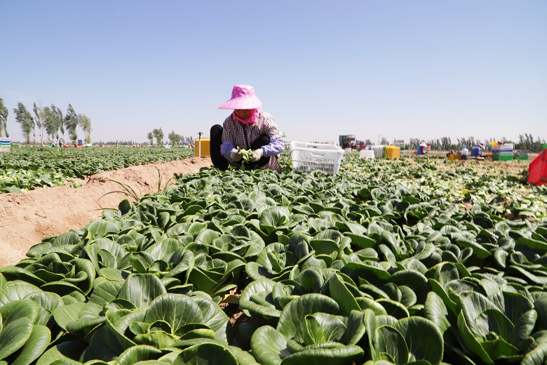 “我们种植的‘供沪’蔬菜有1800亩,主要种植上海青、芥兰、菜心等蔬菜品种,年生产蔬菜预计将达5200吨,实现产值超3500万元。目前,在田里收菜的工人有120人左右,每天采收的蔬菜量在27吨左右,收的蔬菜都会进行预冷、打包,然后发往上海、广州等地区。”甘肃华裕鼎盛生态农业有限公司经理江伟洲说。