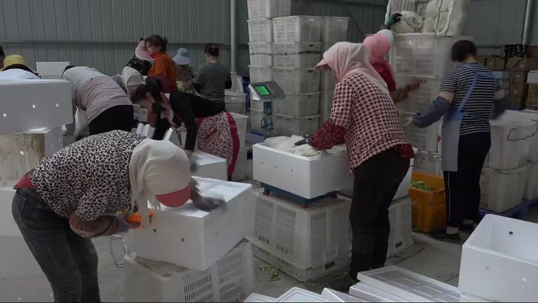 走进基地冷库里,工人们将制冷后的蔬菜装箱、打包,准备发货。基地负责人介绍,由于当地光照足、温差大、雨水少、污染小,产出的蔬菜品质相当不错,加上全程冷链运输,保证了蔬菜的新鲜度。