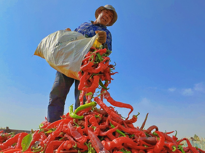 行走在黑泉镇十坝村的田间地头,随处可见色泽鲜亮的辣椒挂满枝头,椒农们三五成群,穿梭在辣椒丛中,忙着采摘、打包、装运,奏响了幸福的乡村振兴“椒”响曲。“我今年种了20亩板椒,今年的板椒产量高、品质好,年初就签了订单合同也不愁卖,一亩地大概能收5500元。”望着正在收获的辣椒,种植户周大姐喜上眉梢。
