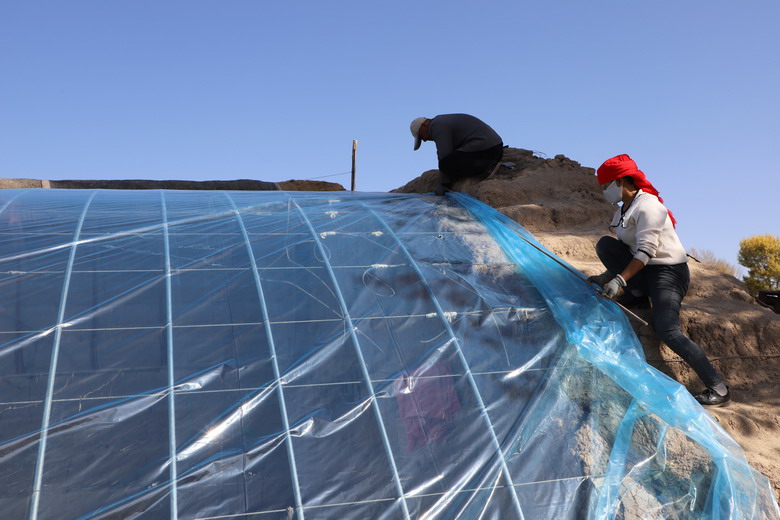 正值寒露时节,田野空旷,万物皆藏,而宣化镇台子寺村的温室大棚里却生机盎然,新栽的人参果苗已抽枝撒叶,果农们正忙着吊秧苗,打偏条,换棚膜,为来年果品上市做准备。