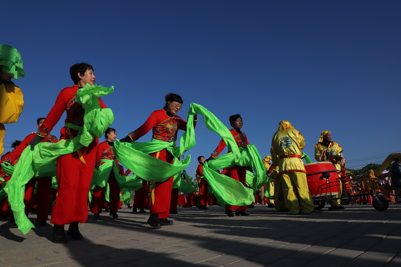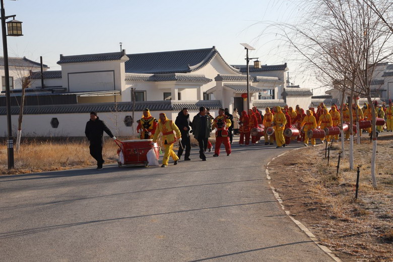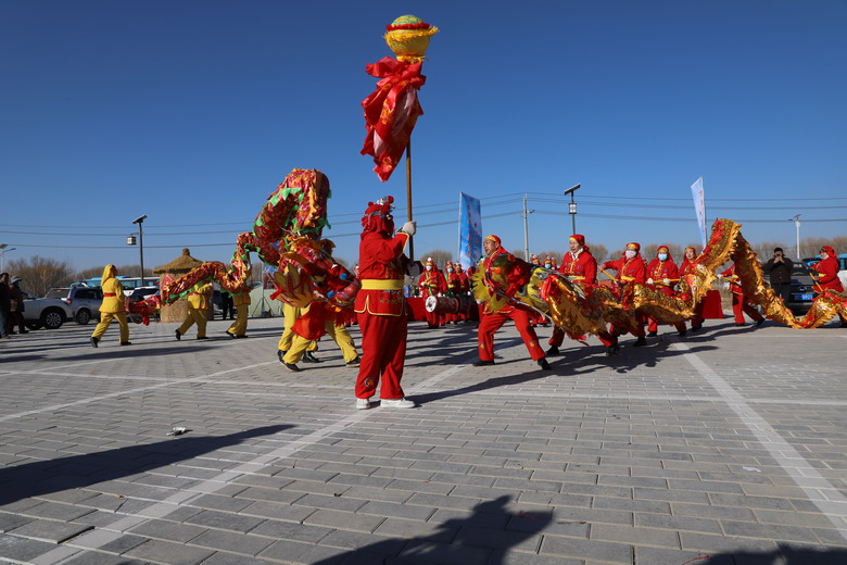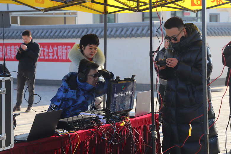 冬月的天,蒹葭苍苍。弱水河畔,白墙黛瓦的民居炊烟袅袅、鸡鸣狗叫,尽显乡村的和美。来自全县各镇的巨龙、雄狮、秧歌队以及气势磅礴的太平鼓队,绕弱水湖一周,以示对宣化人民的祝福。演出现场,来自各媒体的长枪短炮早早就抢占有利地形,调设备、找焦点,备战直播。来自四面八方的村民们摩肩接踵、扶老携幼,不一会儿就将广场围得水泄不通。