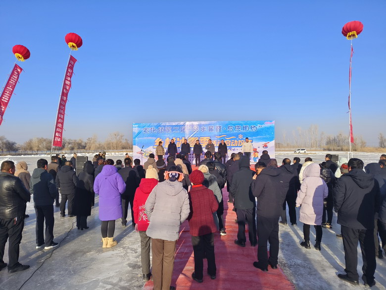 12月20日,宣化镇第二届“弱水蒹葭·与您相约”乡村冰雪季活动启动仪式在上庄村弱水蒹葭冰乐园举行。