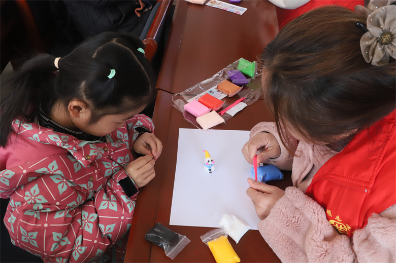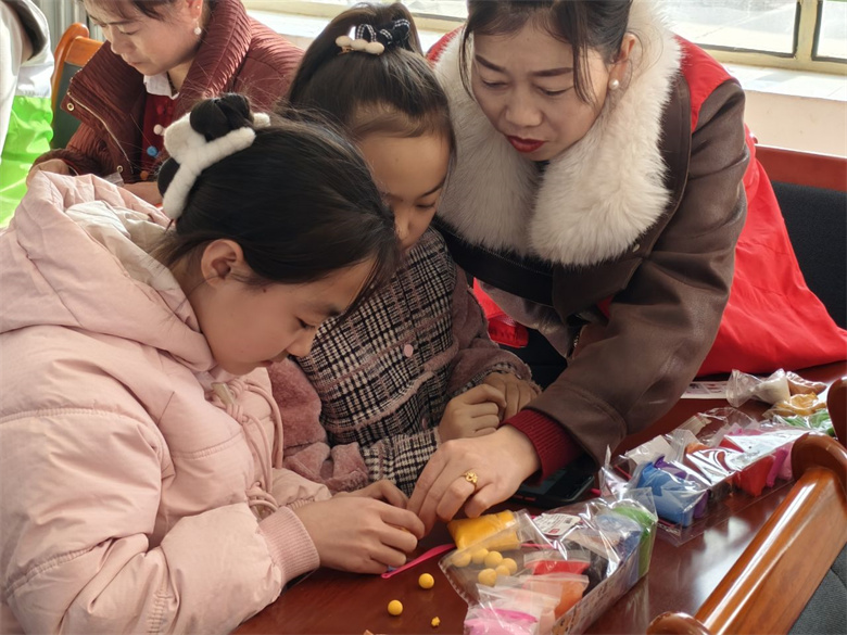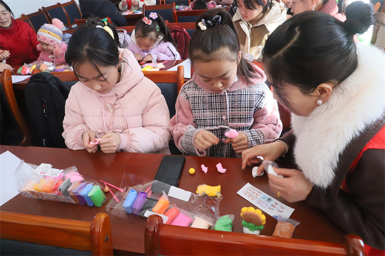讲座结束后,孩子们在“爱心妈妈”和巾帼志愿者的耐心指导下,纷纷开动脑筋,开始自己的创作之旅,细心捏制各式各样的小手工,现场欢声笑语不断。从灵动可爱的小兔子到憨态可掬的小企鹅,从精致小巧的盆栽到喜庆吉祥的“柿柿如意”,孩子们的每一个动作都充满了关注和认真,不一会儿,一个个栩栩如生的手工作品呈现在大家眼前,赢得了大家的阵阵掌声与喝彩。