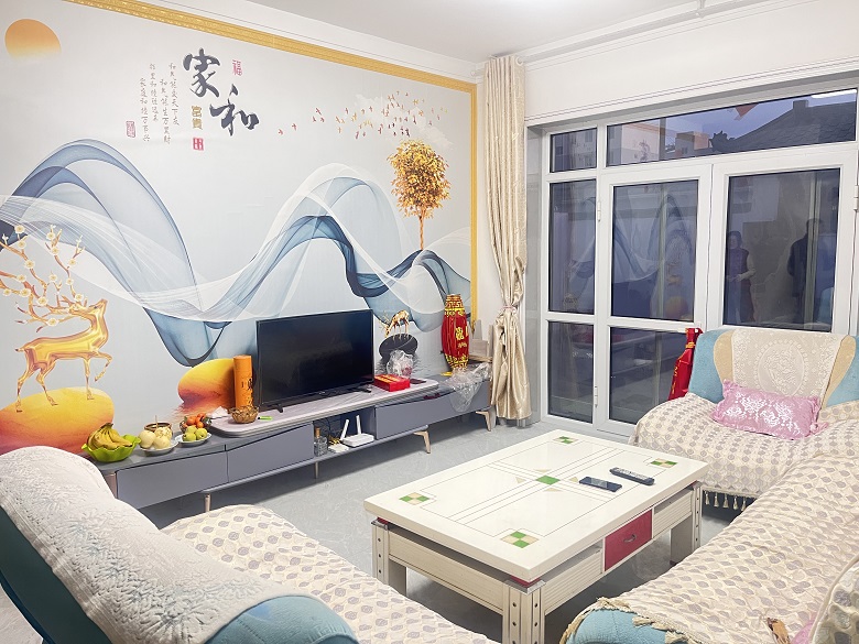 在黑泉村村民张建军家的屋外,记者看到他们正准备挖坑种树美化屋外,能感受到别样的温暖。屋内敞亮的客厅,现代风的沙发、茶几,屋子虽然不大,但夫妻俩收拾得井井有条,亦可看出他们对新生活的向往。“今年和儿子、儿媳第一次在新居过年,住在这么好新房子里,每天都能感受到幸福的气息,心里也特别踏实。”黑泉村六社村民笑着说。