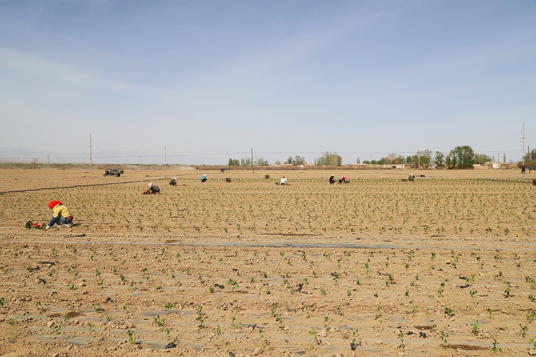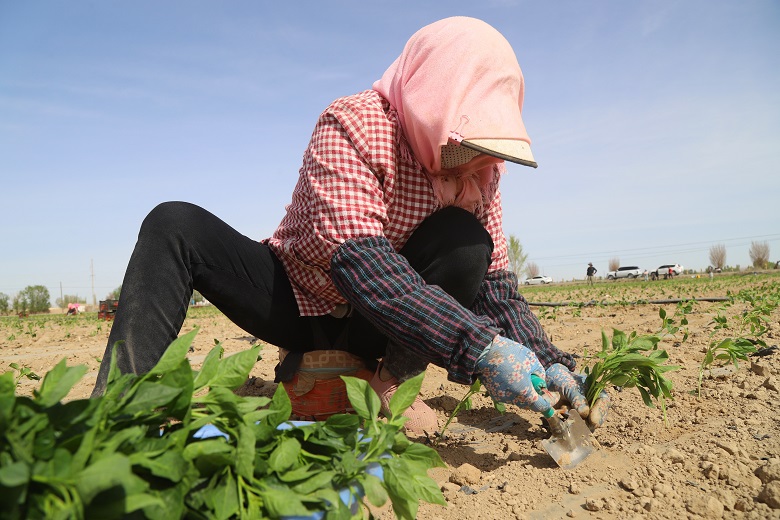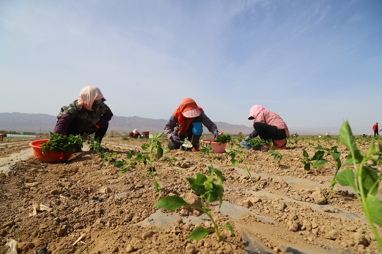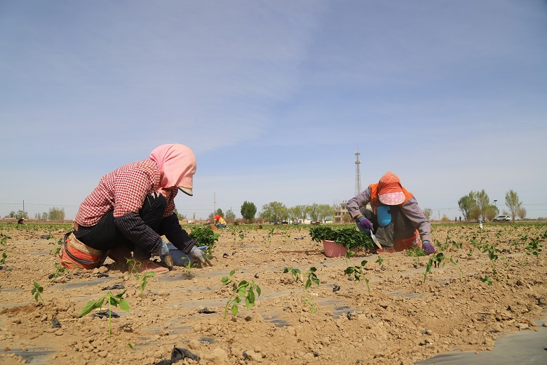“今年,我和几个合伙人计划在这里种植辣椒1100亩,趁这几天天气好,我们组织了40多人抓紧栽种,目前已完成200余亩辣椒苗的移栽,预计两周左右就能全部栽种完成。”胜利村种植大户王廷说。