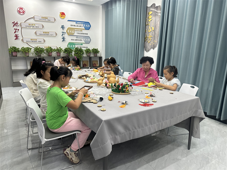 一到暑假,新建东村社区的活动室里,总飘着孩子们的欢笑声。这里是“共享奶奶”的“爱心课堂”:26位退休女性带着各自的“看家本领”赶来 —— 王奶奶握着孩子的小手教执笔练字,一笔一画都是耐心;刘奶奶铺开彩纸示范剪纸,转眼间就剪出一只蹦跳的小兔子;张奶奶则领着孩子们做手工灯笼,指尖翻飞间,一个个带着童趣的灯笼渐渐成形。老幼相携的画面里,皱纹与笑脸相映,暖意顺着针线、伴着笑声,在屋里轻轻流淌。