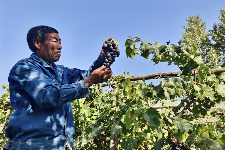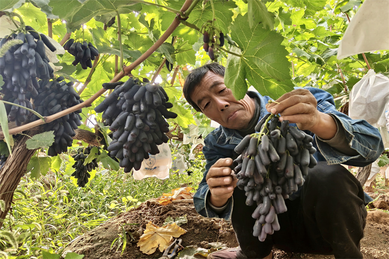 在六一村的葡萄采摘园里,王天科看着自家的葡萄喜笑颜开,这里葡萄品种丰富多样,有甜蜜蓝宝石、红提、巨峰、阳光玫瑰等,每一种都各具特色。“我园子里种的主要是梨和葡萄,品种加起来有10多种,价格的话根据品种的不同从3元到10元钱不等,主要依靠的是零售和采摘,目前呢都销售的挺不错的。”