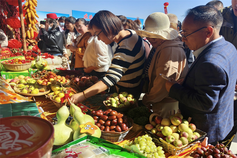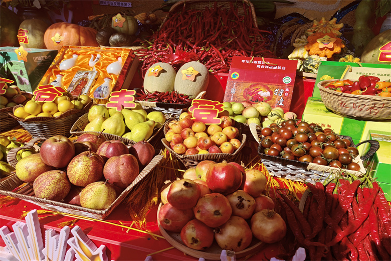 展区现场,人声鼎沸,热闹非凡。农产品展销区里,色泽鲜亮的辣椒、金黄饱满的玉米、圆润饱满的西瓜、脆甜可口的酥梨、娇艳欲滴的鲜桃等琳琅满目,吸引了众多游客和民众驻足品尝、咨询。美食区里,肥而不腻的山猪卤肉、营养丰富的锁阳粉皮、晶莹剔透的手工酿皮、酸辣可口的方便面筋等特色美食香气扑鼻,让人垂涎欲滴,十多种特色产品悉数亮相,展位前挤满了前来品尝和购买的民众。大家一起品尝丰硕成果,共同分享丰收喜悦。
