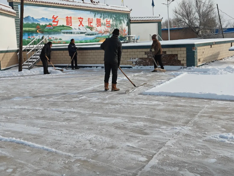 针对镇村主干道、十字路口、坡道弯道、党群服务中心、学校周边等重点区域积雪厚、清理难度大的情况,各村统筹调配铲车、清运车等机械设备,采取“机械铲雪+人工清面”的作业模式,大幅提升清雪效率,机械轰鸣开路,集中清理主干道积雪,志愿者们紧随其后,手持铁锹、扫帚等工具,仔细清理人行道、房前屋后及机械作业盲区的残雪碎冰,做到清雪无死角、通行无阻碍。