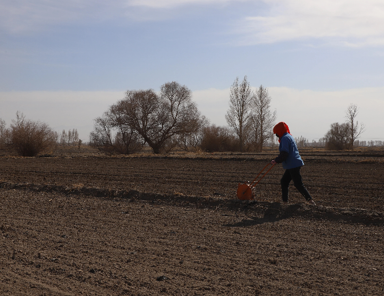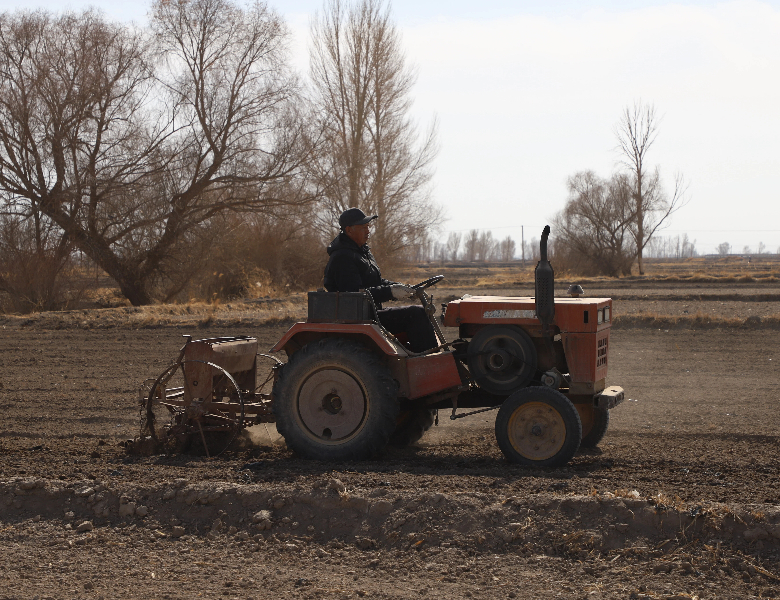 当前正值春小麦与制种瓜菜种植的黄金时节。在乐二村,笔者看到,空旷的田野上,农户们或夫妻协作,或邻里相助,施肥、铺膜、压土、播种,有序开展作业。“惊蛰前种了12亩小麦,这几天铺好膜,准备种萝卜和香菜。”乐二村村委会副主任殷建忠介绍,“制种瓜菜节水、效益也好,是咱们村的‘铁杆庄稼’。”今年政府实行严格的节水、配水计划,他种植了10亩孜然,10亩制种萝卜,5亩香菜,3亩菜心,都是耗水少、耐旱、收入好的制种瓜菜作物。乐二村毗邻河道,耕地属碱潮地,传统作物效益有限,经多年摸索,村民逐步转向发展小麦保口粮、制种瓜菜促增收的种植模式。