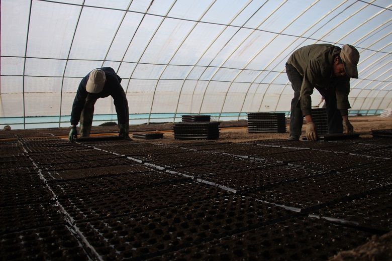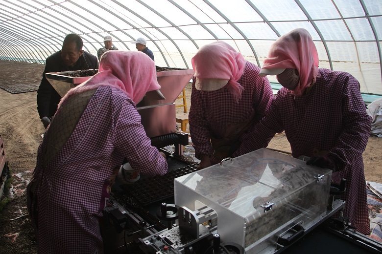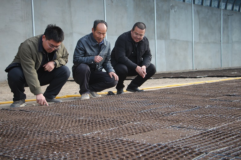 据育苗大棚负责人周振邦介绍,当前大棚内的辣椒苗已经育苗十来天左右,现已进入出芽期,出芽率达到98%左右,目前正在陆续出苗,种苗已进入补苗管理阶段。“我每天在这里育苗、补苗,从年后育苗催芽到现在出苗管护,看到自己育的苗一天天长大,过段时间移栽也很放心,在这里打工,生活得到了保障,育苗技术也学习掌握了不少。”胭脂堡村村民杨开福说。