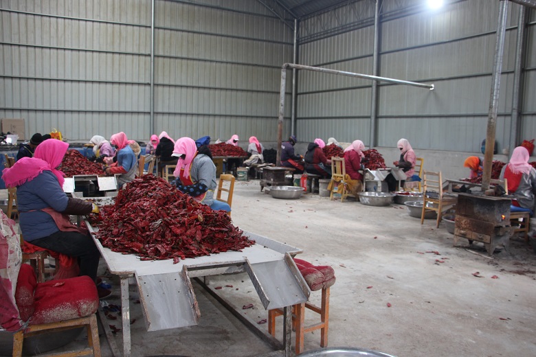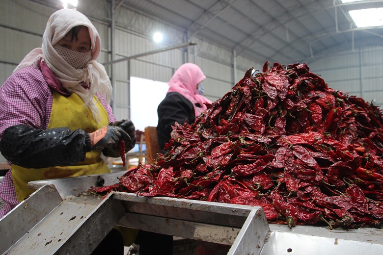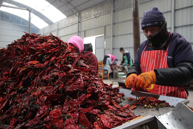 胭脂堡村党支部书记、村委会主任雷永东一边查看分拣情况,一边向记者介绍:“我们生产的腌渍辣椒质量佳,口感好,市场销售供不应求。节后复工后,我们加班加点地进行生产,至目前,腌渍鲜椒400吨,可加工腌渍辣椒260吨。”为赶制春节后首批订单,村企召集村民迅速从“过年模式” 切换到“生产模式”。