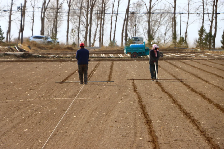 在新生村十社,地头上一群人正围坐休息,聊得热乎。“今年我种了30亩制种萝卜,产量稳定的话收入很可观。”农户们笑着介绍。小坝村六社,郑斌邦正忙着铺地膜、撒化肥,为制种玉米下种做准备。“现在先把滴灌铺好,等到四月中旬就能播种了。”郑斌邦说,这些年制种玉米行情稳、收益好,大伙儿种得踏实、有奔头。