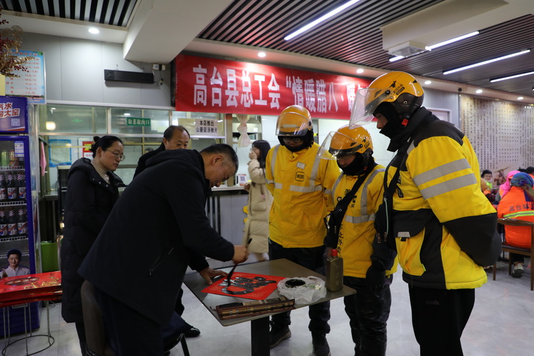 1月18日是农历腊月初八,俗话说:过了腊八就是年。当天,高台县总工会联合孙记炒炮户外劳动者驿站开展了“情暖腊八·暖冬送福”腊八节送温暖活动。