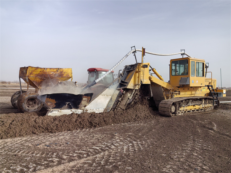 宣化镇乐二村离河近,滩多水位高,耕地盐碱大,广种薄收一直困扰着村民增产增收,被群众视为“鸡肋地”。今年,该村被确定为盐碱耕地综合治理利用试点项目区之一。在施工现场,工人们将渗漏管一字摆开、对接,再通过自动一体化铺管机一次性完成开沟、铺管、覆砂、回填等工序,宛如长龙的白色渗漏管被深埋地下。